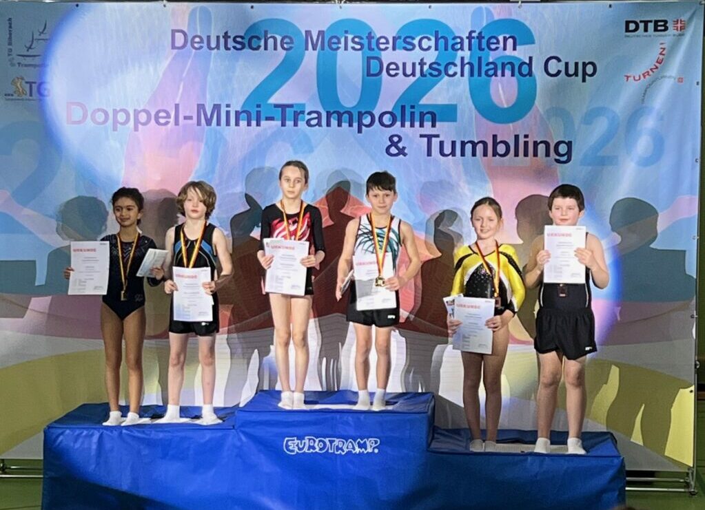Ein erfolgreiches Wochenende liegt hinter der Trampolingruppe der TSG Bad Wurzach. Am 28. Februar und 1. März fanden in Biberach die Deutschen Meisterschaften sowie der Deutschland-Cup im Doppelminitrampolin statt. Die erst achtjährige Sophie Berle gewann eine Bronzemedaille im Deutschland-Cup.