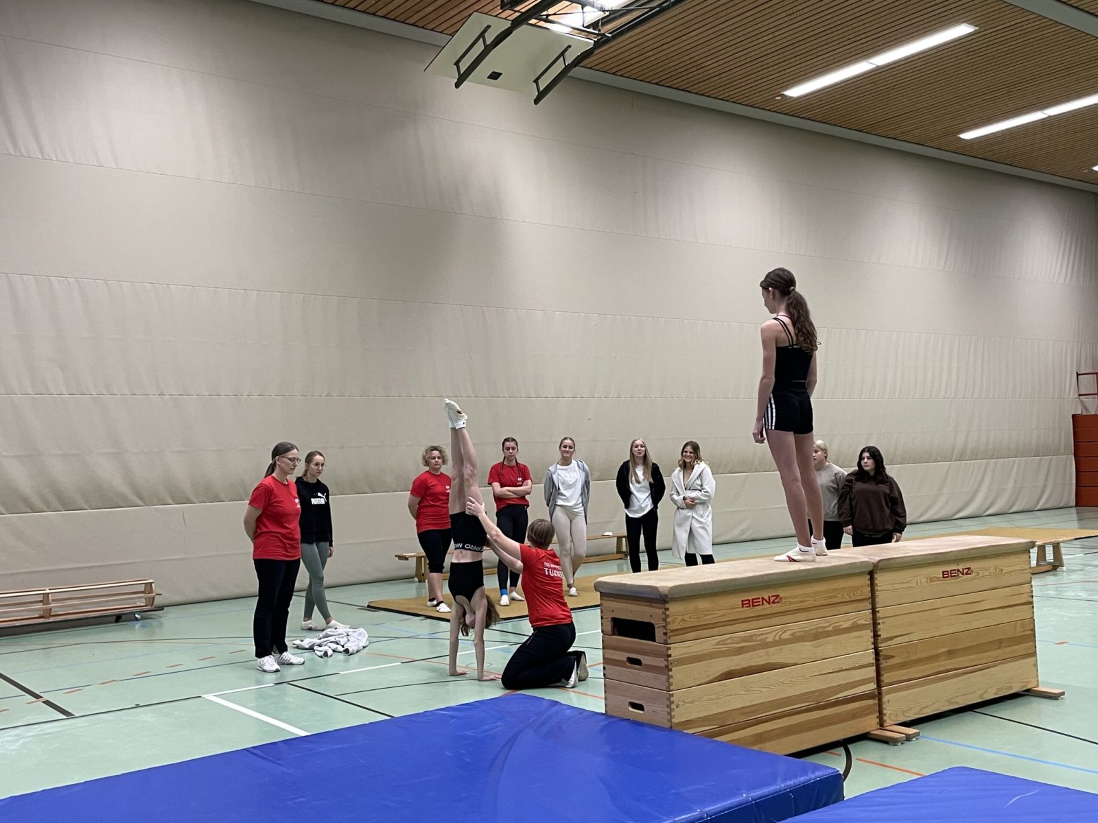 Viele Übungsleiter-/Übunshelferinnen stehen unseren Turnerinnen jede Woche zur Seite, geben Hilfestellung und erklären neue Elemente. Gerade das Thema Hilfestellung steht an oberster Stelle für die Sicherheit an den unterschiedlichen Geräten. Um alle Helferinnen auf den selben Stand zu bekommen und neue Helferinnen einzulernen, wurde ein kleiner interner Helferlehrgang ins Leben gerufen.